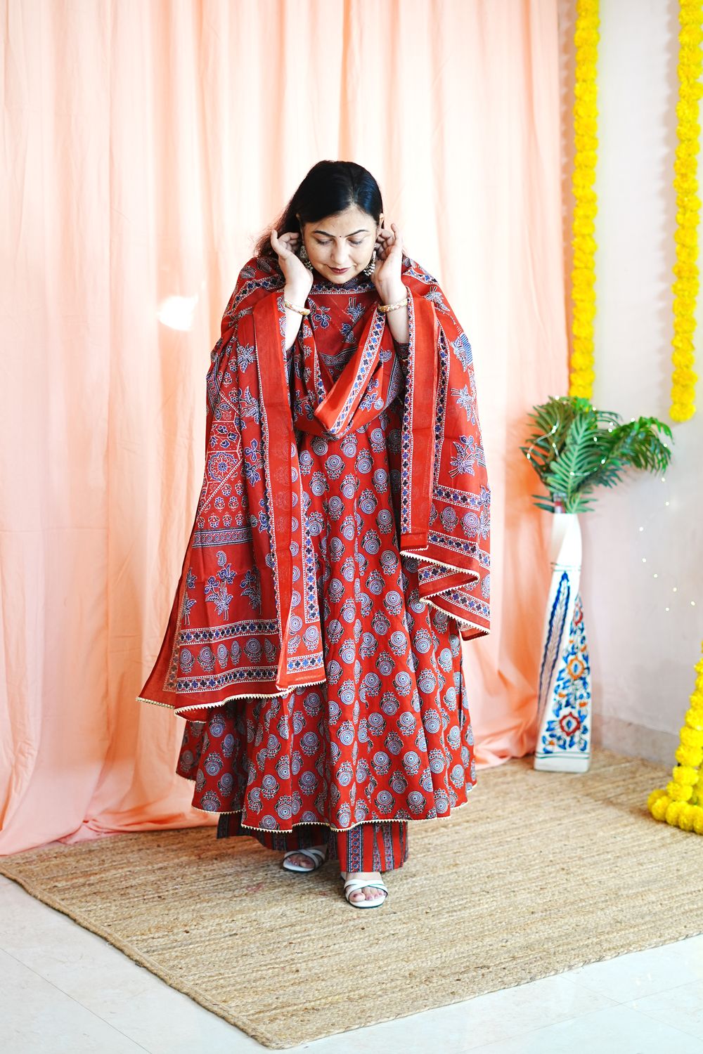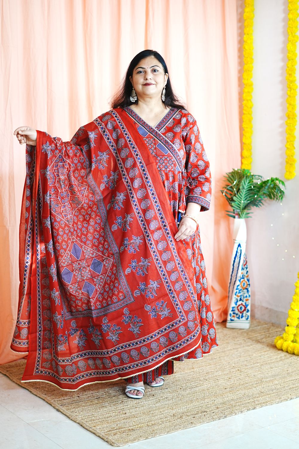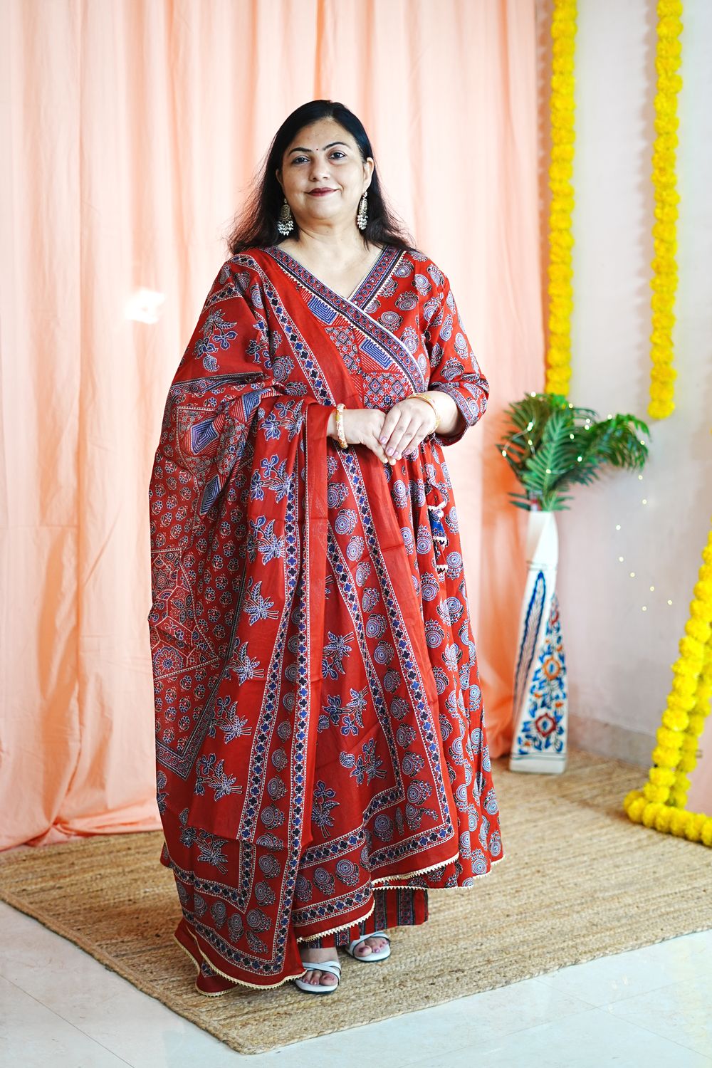 Color: Classic Red with Ajrakh printed motifs