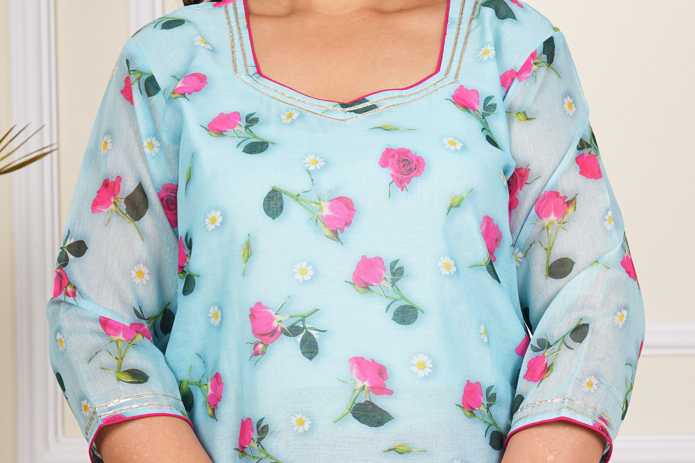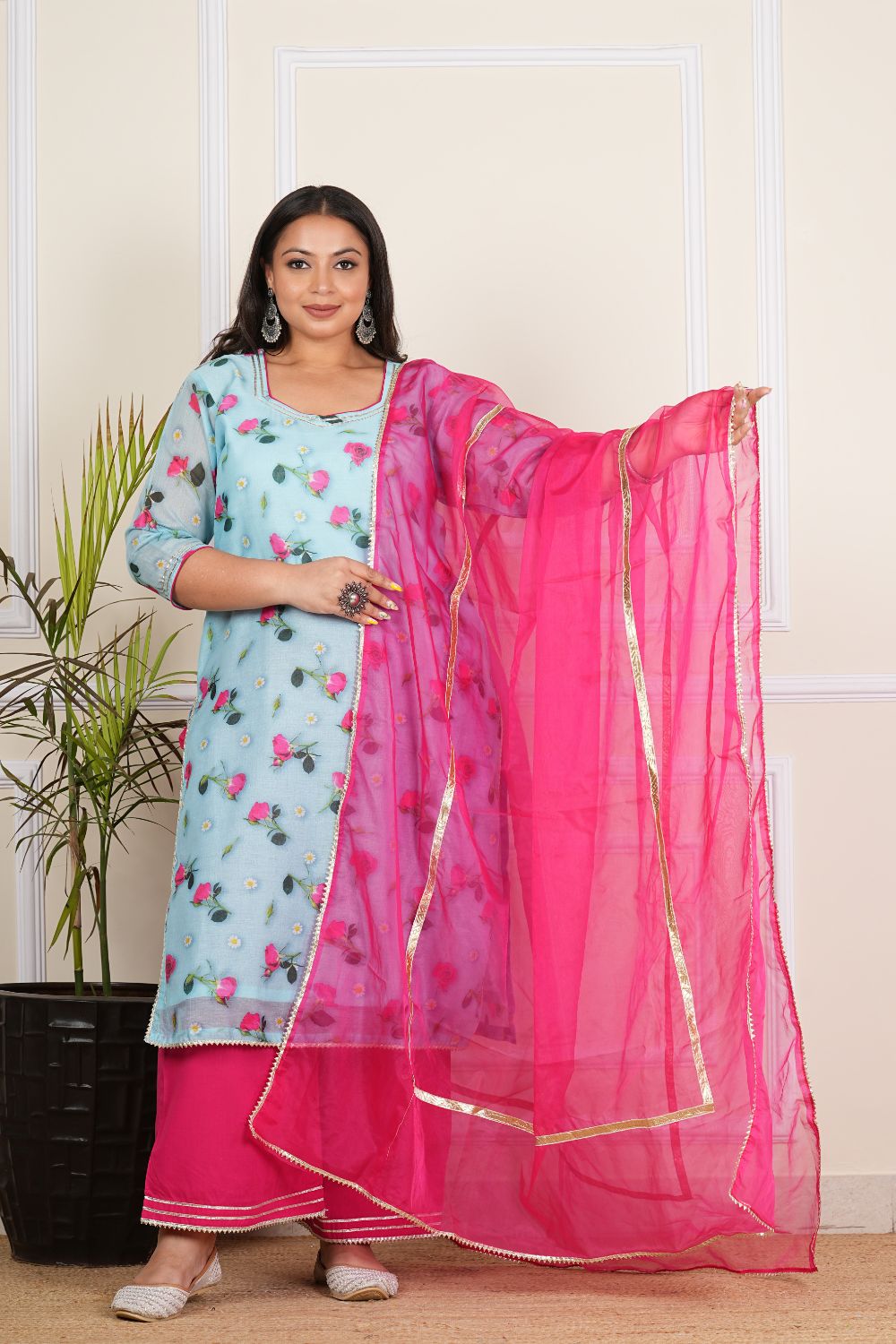 Top Fabric: Premium Digital Printed Chanderi – soft, lightweight, and beautifully detailed.