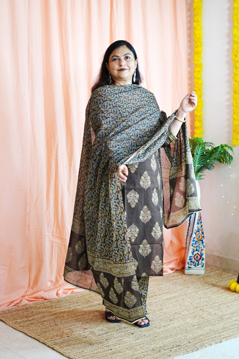 Feel confident, comfortable, and effortlessly elegant in our Brown Butta Cotton 3 Pcs Set , designed specially for plus-size women (S-36 to 15XL).