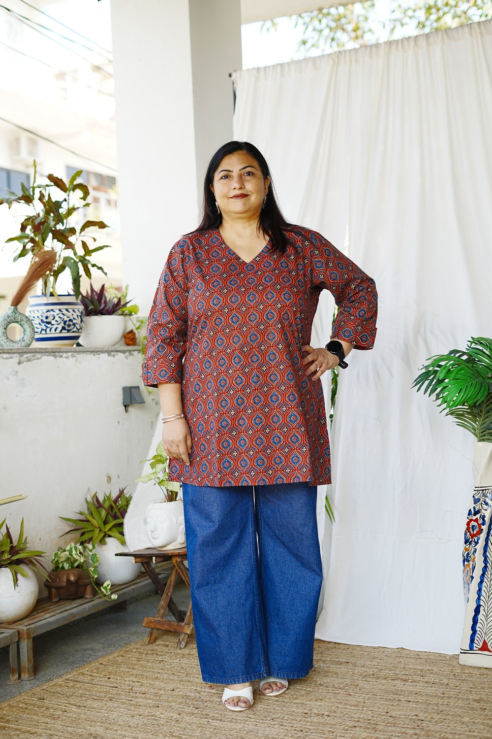 Be the first to review “Maroon Ajrakh Printed Short Kurta”