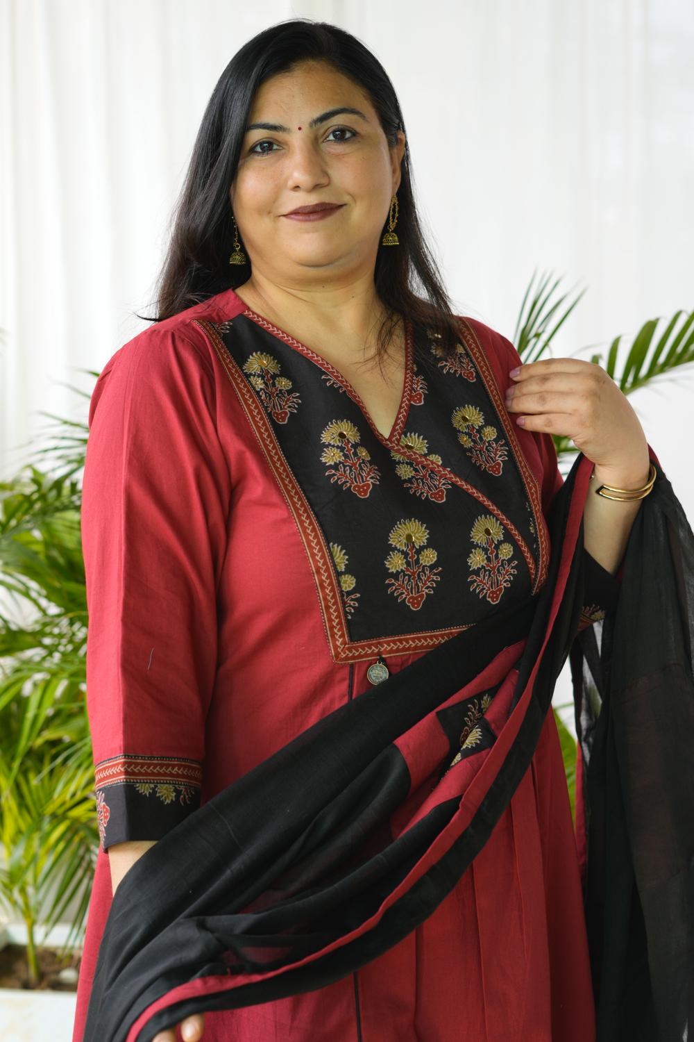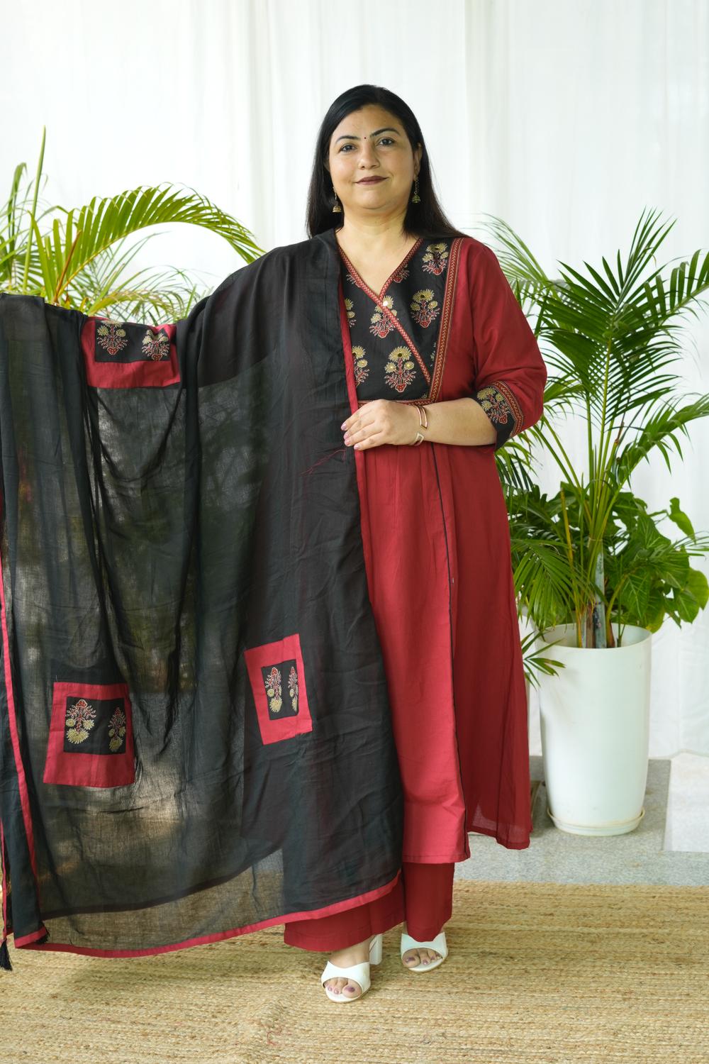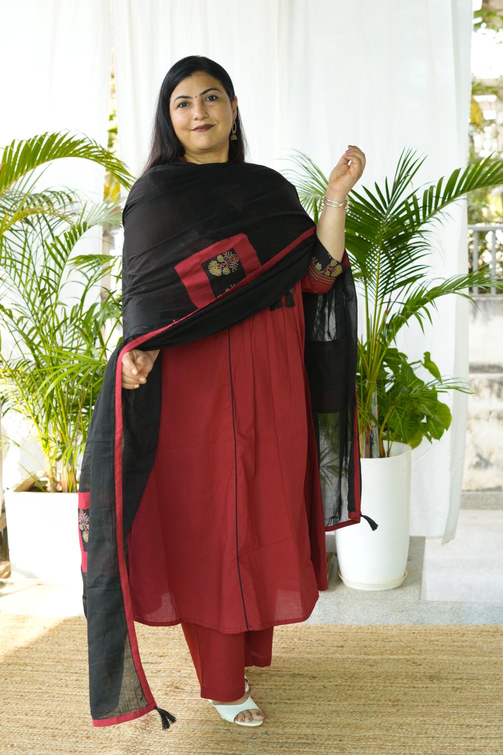 Feel confident, comfortable, and effortlessly elegant in our Maroon Black Butta Dupatta Set , designed specially for plus-size women (S-36 to 15XL).
