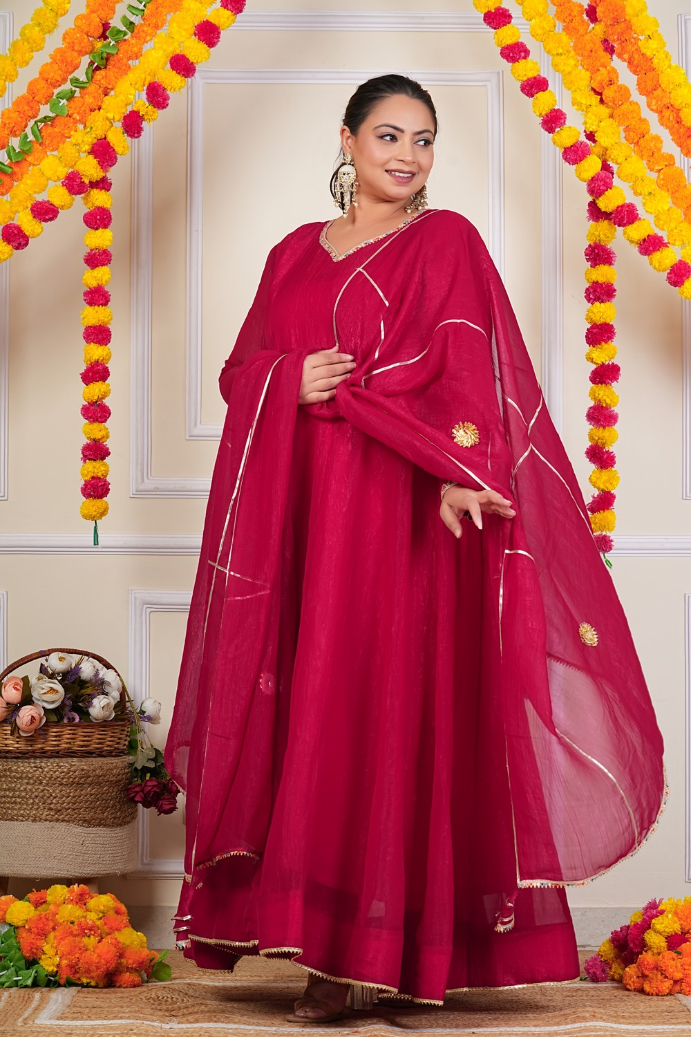 Rani Pink Sundari Silk Anarkali Dress